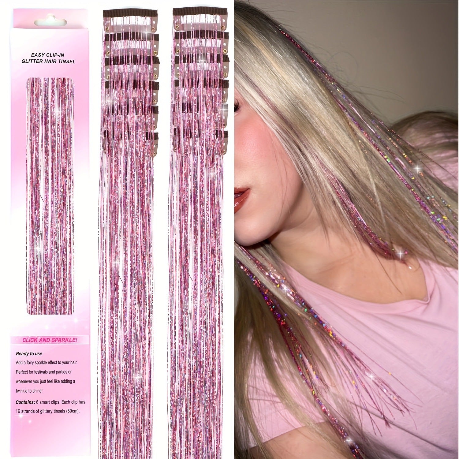 Glitzer-Haarextensions mit Clips | Farbige Highlights für sofortigen Wow-Effekt