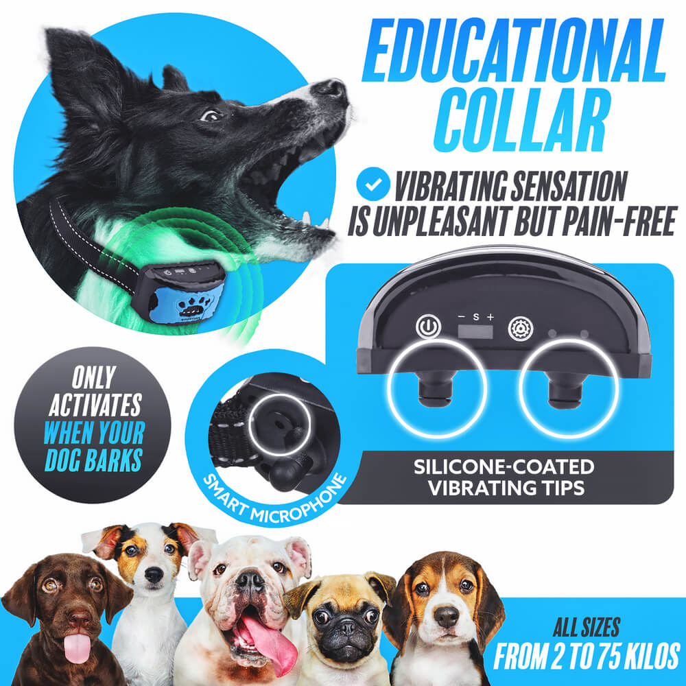 - Hier passiert die Magie. Mit Hilfe modernster Technologie erkennt unser Halsband das Bellen Ihres Hundes und unterscheidet es von Umgebungsgeräuschen. Es gibt dann eine sanfte, sichere und einstellbare Vibration oder Ton ab, die die Aufmerksamkeit Ihres Hundes erregt und ihn dazu bringt, sich zu entspannen und sein Bellen zu reduzieren. Im Laufe der Zeit lernt er, übermäßiges Bellen mit dem sanften Signal zu verbinden und entwickelt dadurch neue Verhaltensmuster.