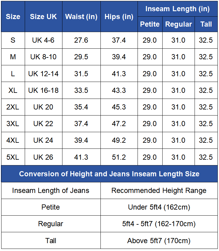 Längen: Regular / Tall / Petite