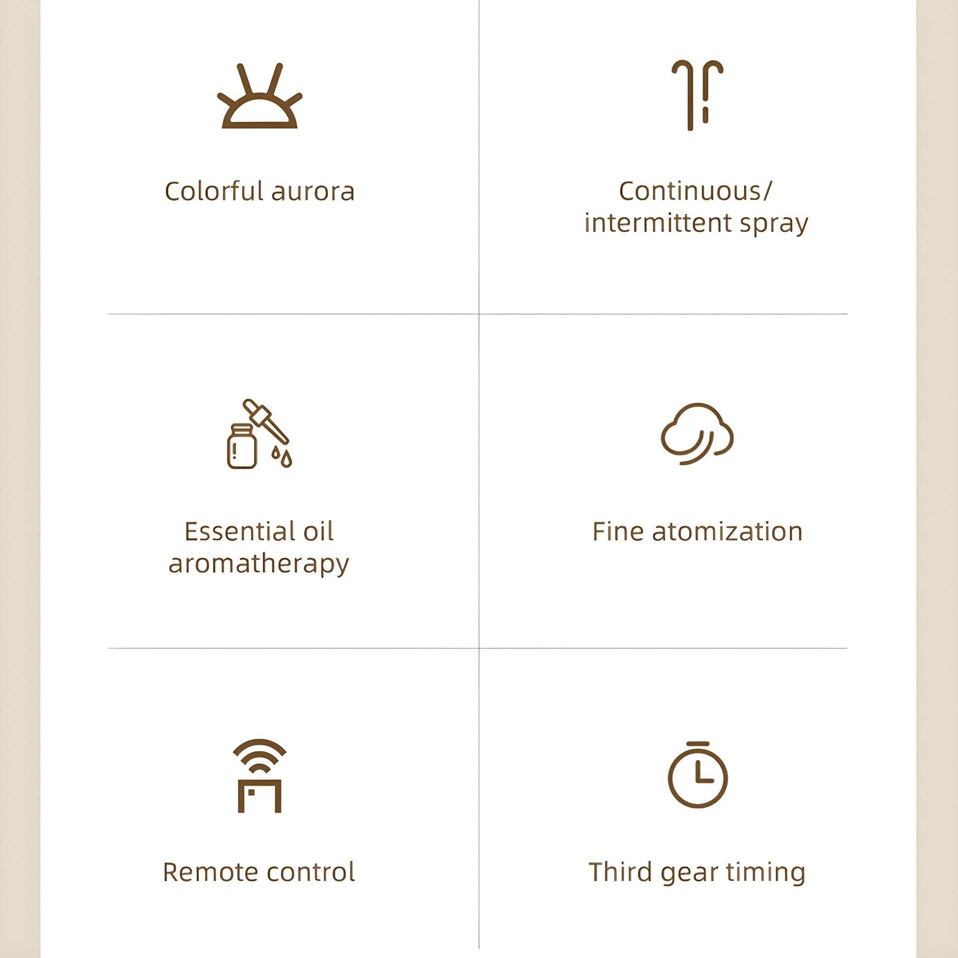 Der feine Ultraschallnebel befeuchtet die Luft angenehm, während das Aurora-Licht eine beruhigende Atmosphäre schafft. Einfach ein paar Tropfen ätherisches Öl hinzufügen und in wenigen Minuten abschalten.