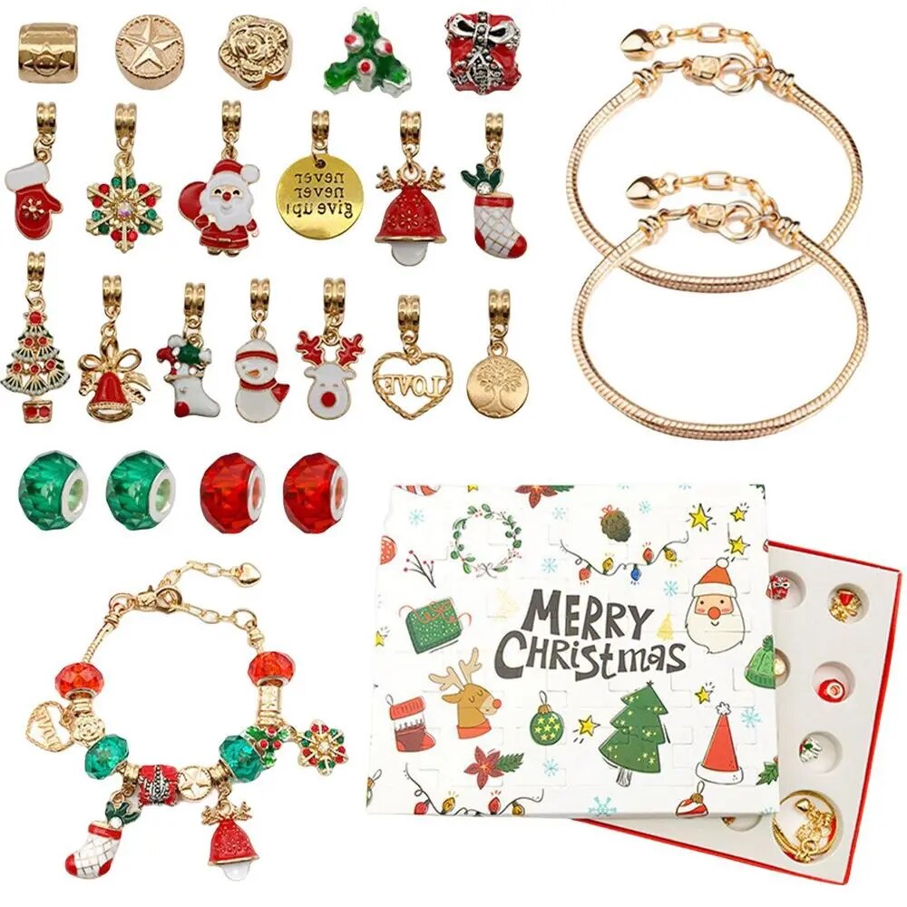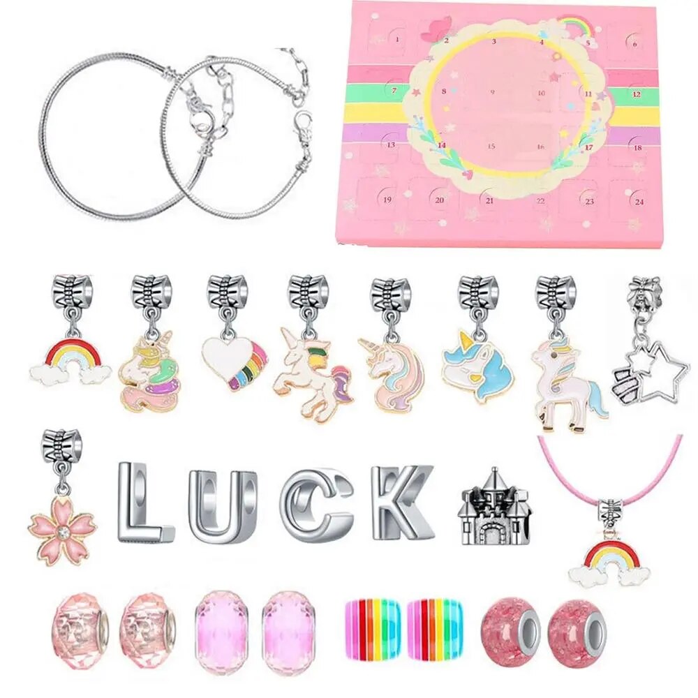 Der Adventskalender enthält 22 DIY-Charmanhänger und 2 Armbänder. Dieses Zubehör fördert die handwerklichen Fähigkeiten der Kinder und beflügelt ihre Fantasie.