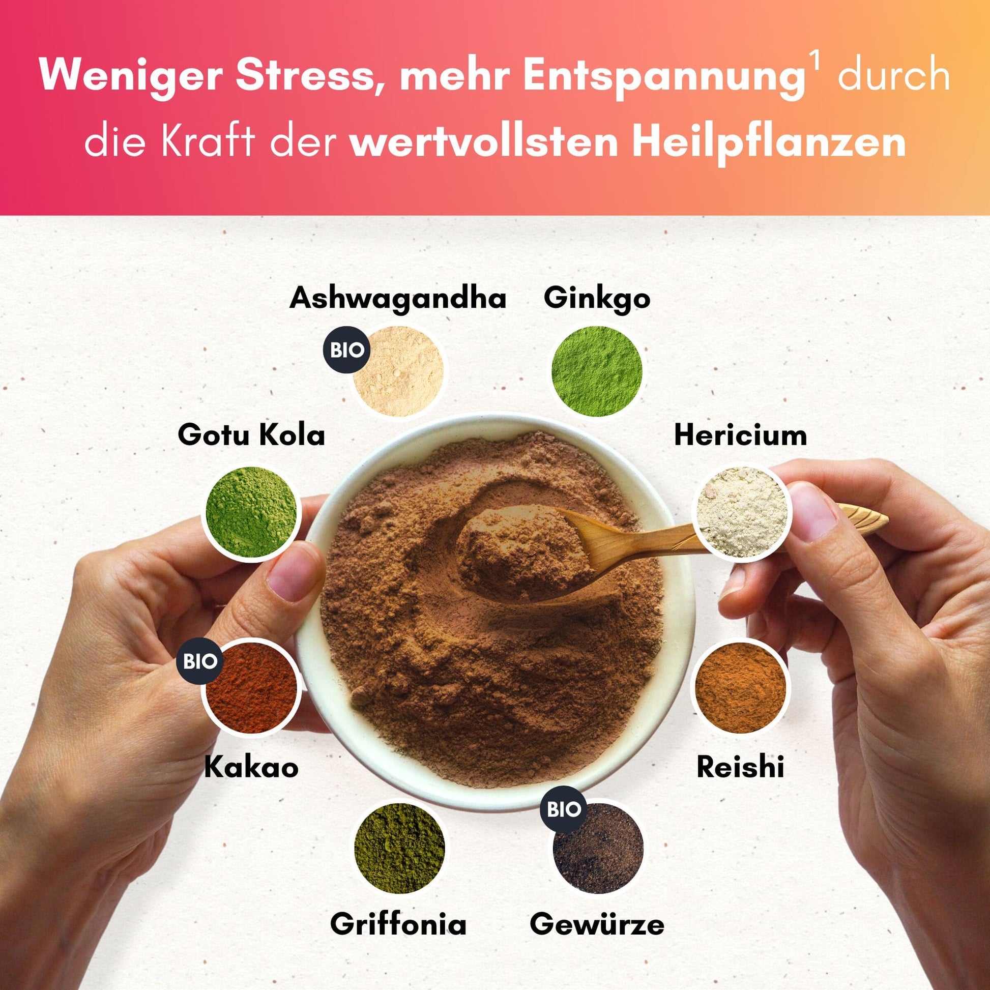 Stell dir vor du fühlst eine angenehme innere Ruhe, bist 100% im Hier und Jetzt, dein Geist ist leistungsfähig, fokussiert und du kannst endlich wieder unbeschwert den Alltag genießen — Die bewährten Heilkräuter und Vitalpilze der asiatischen Medizin machen es möglich!